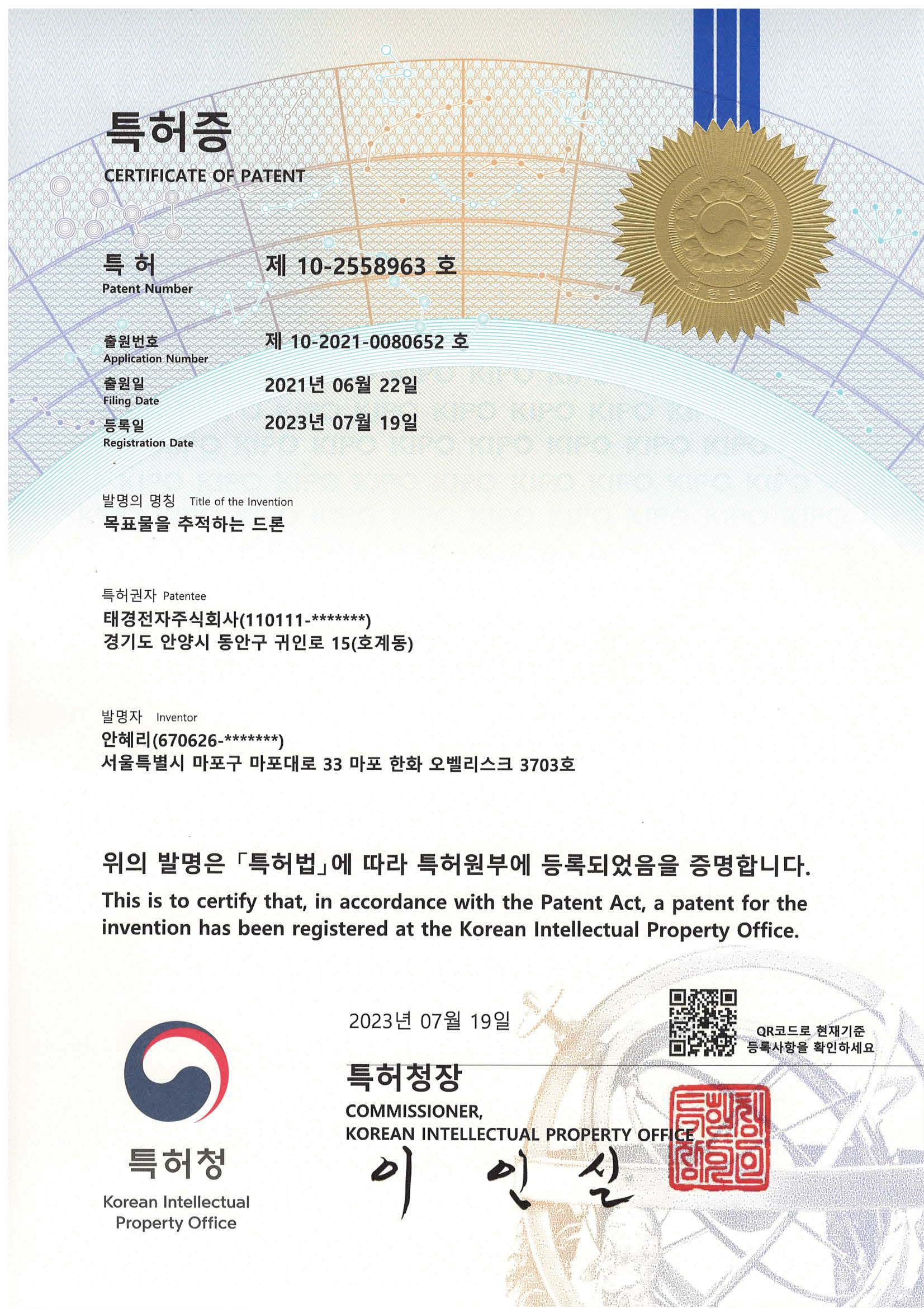 (제 10-2558963호)