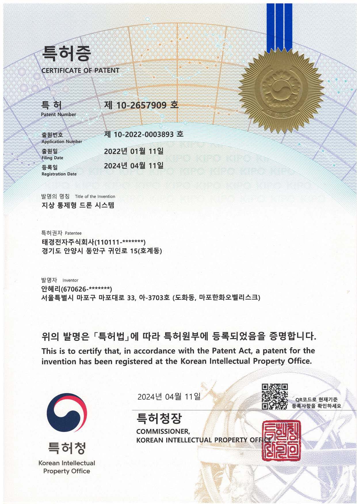 (제 10-2657909호)